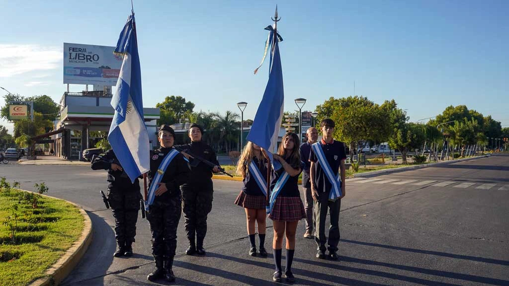 El Intendente Alejandro Molero junto a la Policía de Mendoza, encabezó una marcha conmemorativa desde las calles Ameghino y Avenida Alvear Oeste hasta el kilómetro cero, en honor al natalicio del General José de San Martín, entregando una ofrenda floral al pie del monumento del prócer.