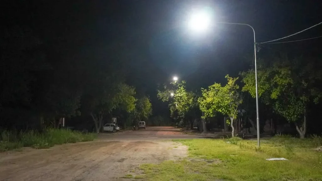 Los trabajos se ejecutaron por etapas e incluyeron sectores como el barrio Viñas del Oeste, calle Santa Fe, calle 7 y nuevas zonas de crecimiento urbano. “Culminó esta etapa y hoy el distrito cuenta con iluminación LED en todos sus sectores”, precisó la funcionaria.