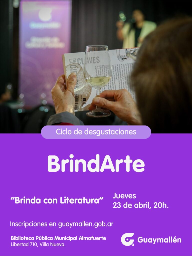 En esta oportunidad, y en el marco del Día Mundial del Libro y del Derecho de Autor, se realizará la actividad “Brindá con literatura”. Será el jueves 23 de abril, a las 20h, en la Biblioteca Pública Municipal Almafuerte (Libertad 710, Villa Nueva).