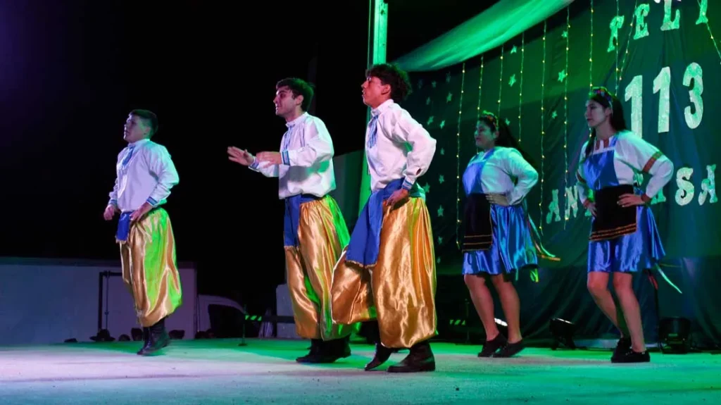 El festejo incluyó presentaciones del Ballet Municipal, el Ballet El Pampa, la Academia Alma Gaucha, el Ballet Ucraniano Kiev y los espectáculos musicales de Las Voces del Auel y El Pajarito Giménez junto a su conjunto, quienes ofrecieron un repertorio variado ante el público presente.