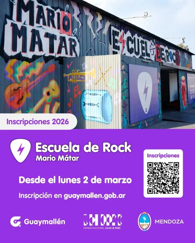 La Municipalidad de Guaymallén abre las puertas a los nuevos estudiantes que quieran sumarse a la Escuela de Rock Mario Mátar. Las inscripciones para el ciclo lectivo 2026 se realizan mediante un formulario web y, posteriormente, se deberá concurrir a la escuela para una breve entrevista personal.