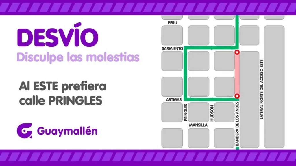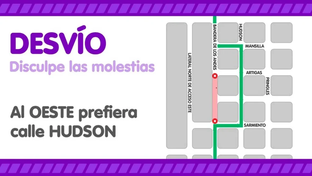 Para quienes circulan por Bandera de Los Andes hacia el este, deberán doblar hacia el norte por Artigas, luego por Pringles hacia el oeste hasta Sarmiento, para volver a Bandera de Los Andes.