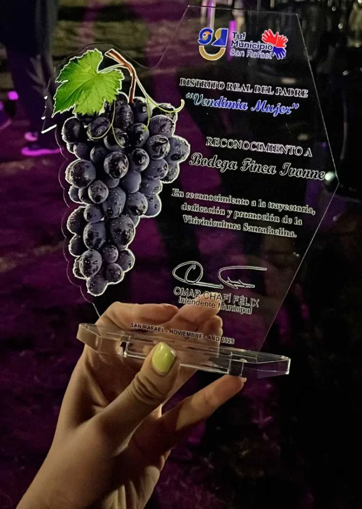 En el marco de la Fiesta de la Vendimia de Real del Padre, se hizo entrega de este merecido reconocimiento que pone en valor su aporte al sector y su rol fundamental en la promoción de nuestra cultura vitivinícola.