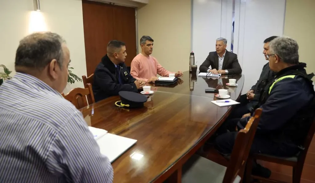 Convocado por el intendente, se realizó esta mañana en la Sala de Intendencia un encuentro de trabajo junto al comisario Fernando Ludueña, jefe de la Policía departamental; al director de la Policía de Tránsito municipal, Luis Alcaino, y al coordinador de Gabinete, Diego Musa.