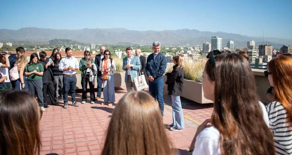 El encuentro tuvo lugar en la Terraza Jardín Mirador de la Municipalidad, donde Ulpiano Suarez dialogó con los jóvenes mendocinos y franceses sobre la experiencia compartida en ambos países. Además, durante la jornada, una guía turística de la Capital acompañó a los adolescentes en un recorrido por los cuatro puntos cardinales desde la Terraza, brindándoles un breve repaso sobre la historia, la cultura y la arquitectura de Mendoza.