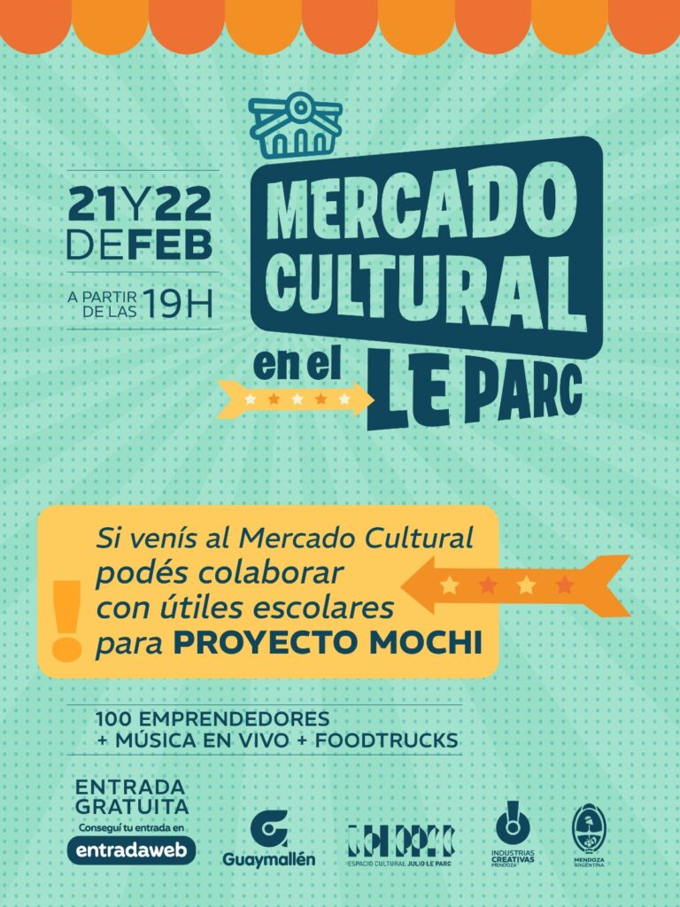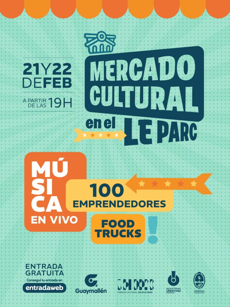 La Subsecretaría de Cultura de Mendoza, a través de la Dirección de Industrias Creativas y en conjunto con la Municipalidad de Guaymallén, presenta una nueva edición del Mercado Cultural. La cita, enmarcada en el 90° aniversario de la Fiesta Nacional de la Vendimia, se desarrollará el sábado 21 y domingo 22 de febrero en el predio externo del Espacio Cultural Julio Le Parc (Mitre y Godoy Cruz, de San José).
