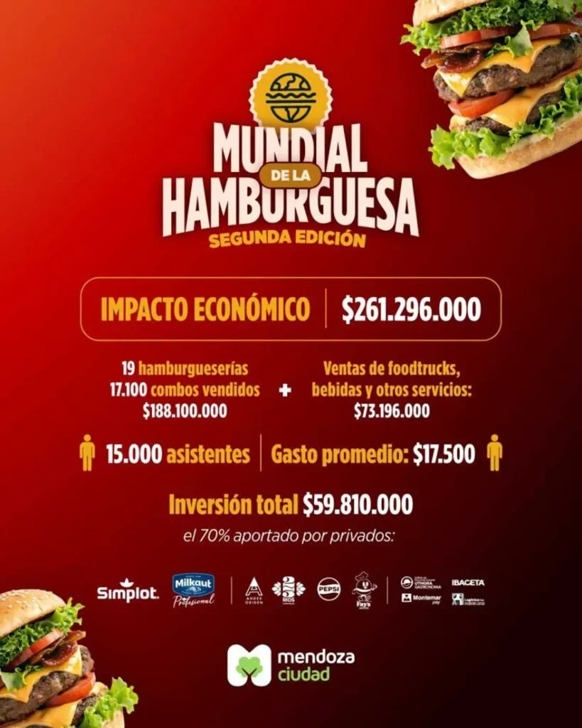 Esta segunda edición del Mundial de la Hamburguesa alcanzó un impacto económico total de $261.296.000, lo que representa un incremento del 72% respecto al realizado el año pasado.