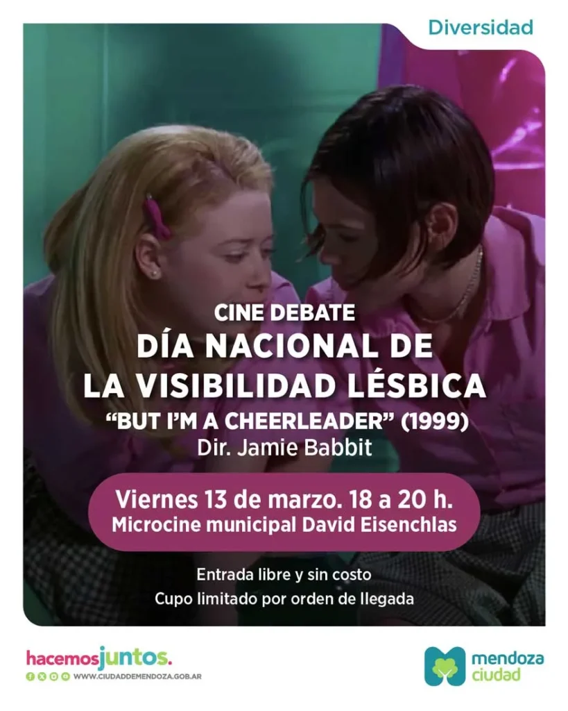 La actividad incluirá la proyección de la película “But I’m a Cheerleader” (1999), dirigida por Jamie Babbit, seguida de un espacio de intercambio y reflexión moderado por una persona referente del colectivo LGBTTNBQ+. La propuesta está destinada al público en general, es gratuita y contará con cupo limitado por orden de llegada.