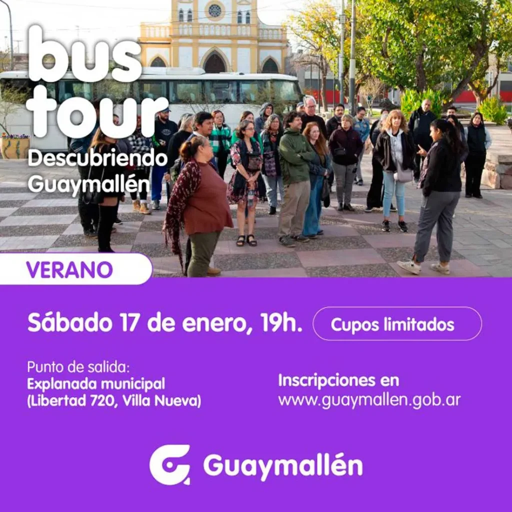 La actividad comenzará a las 19h, con punto de encuentro en la explanada de la Municipalidad de Guaymallén (Libertad 720 de Villa Nuvea). Desde allí, los participantes abordarán el bus para iniciar un recorrido guiado que incluirá paradas en establecimientos de productores culturales y emprendedores del departamento, y finalizará con una degustación de vinos en una bodega.
