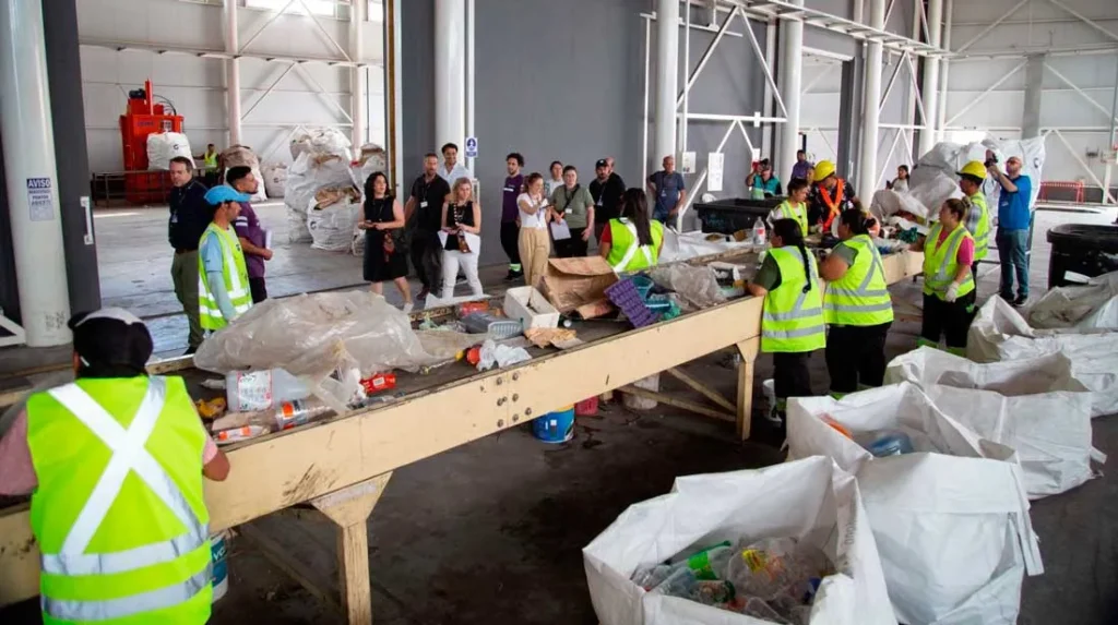 El recorrido incluyó una visita al Centro Verde, la planta de reciclaje del departamento, donde los participantes observaron el funcionamiento interno del sistema: clasificación de materiales, operaciones logísticas, procesos de compactación y mecanismos de control.
