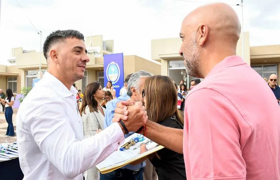 El acto fue encabezado por el gobernador Alfredo Cornejo y el intendente Marcos Calvente. Además participaron la subsecretaria de Infraestructura y Desarrollo Territorial de la Provincia Marité Badui, y el presidente del Instituto Provincial de la Vivienda, Gustavo Cantero.