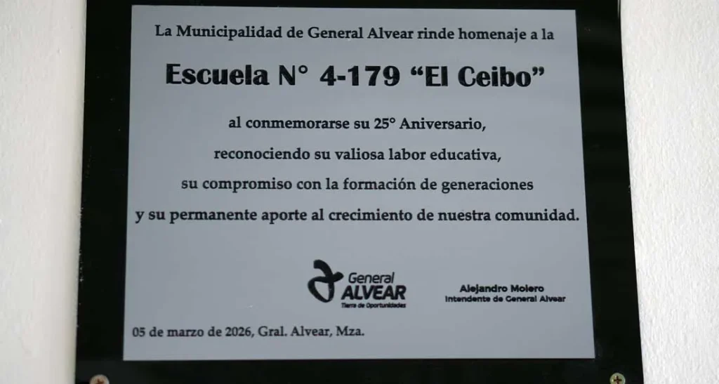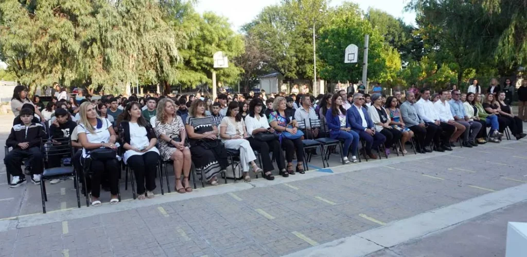 Durante su mensaje, el jefe comunal destacó el perfil formativo del establecimiento y su vínculo con el sector productivo y ambiental del departamento. “Este es un colegio muy particular. No solamente se enseña la currícula habitual, sino que también se trabaja con nuestra producción, con el medio ambiente y con la ruralidad en su máxima expresión. Nació para contener a jóvenes de esta zona y hoy asisten estudiantes de prácticamente todo General Alvear”, expresó.