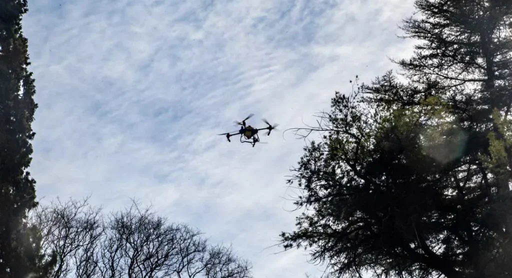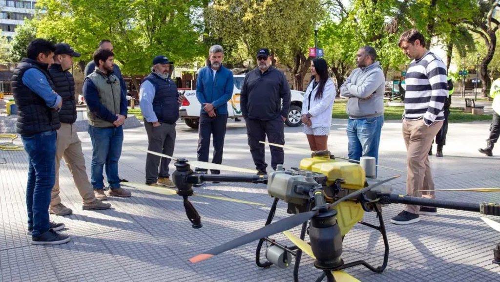 “Se trabajó en la plaza Italia con pulverización aérea mediante drones para alcanzar la altura de las tipas y otros ejemplares de gran porte. La Ciudad de Mendoza es pionera en aplicar esta tecnología para el cuidado del arbolado urbano. La operación está a cargo de la empresa mendocina Agro Vants y nos permite aplicar productos orgánicos de control biológico sobre las copas, con precisión y seguridad. Porque desde nuestra gestión, cuidar la Ciudad también es innovar en cómo protegemos los espacios verdes”, remarcó Ulpiano Suarez, quien tras la actividad felicitó a todo el equipo de la empresa contratada por su profesionalismo y compromiso con el cuidado del ambiente.