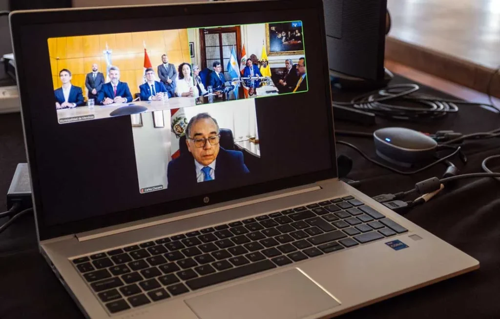El encuentro, que tuvo modalidad híbrida, fue encabezado por el intendente de la Ciudad de Mendoza, Ulpiano Suarez, y contó con la presencia de la secretaria de Desarrollo Económico y Turismo, Yamila Meljim; del Cónsul General del Perú en Mendoza, Alberto Javier Hart Merino, y del Cónsul Adjunto del Perú en Mendoza, Luis Andrés García Román. Asimismo, de manera virtual, participaron el embajador del Perú en la Argentina, Carlos Alberto Chocano Burga; el embajador de la Argentina en el Perú, Samuel Ortiz Basualdo, y el alcalde metropolitano de Lima, Renzo Andrés Reggiardo Barreto, quienes acompañaron la firma desde Buenos Aires y Lima, respectivamente.