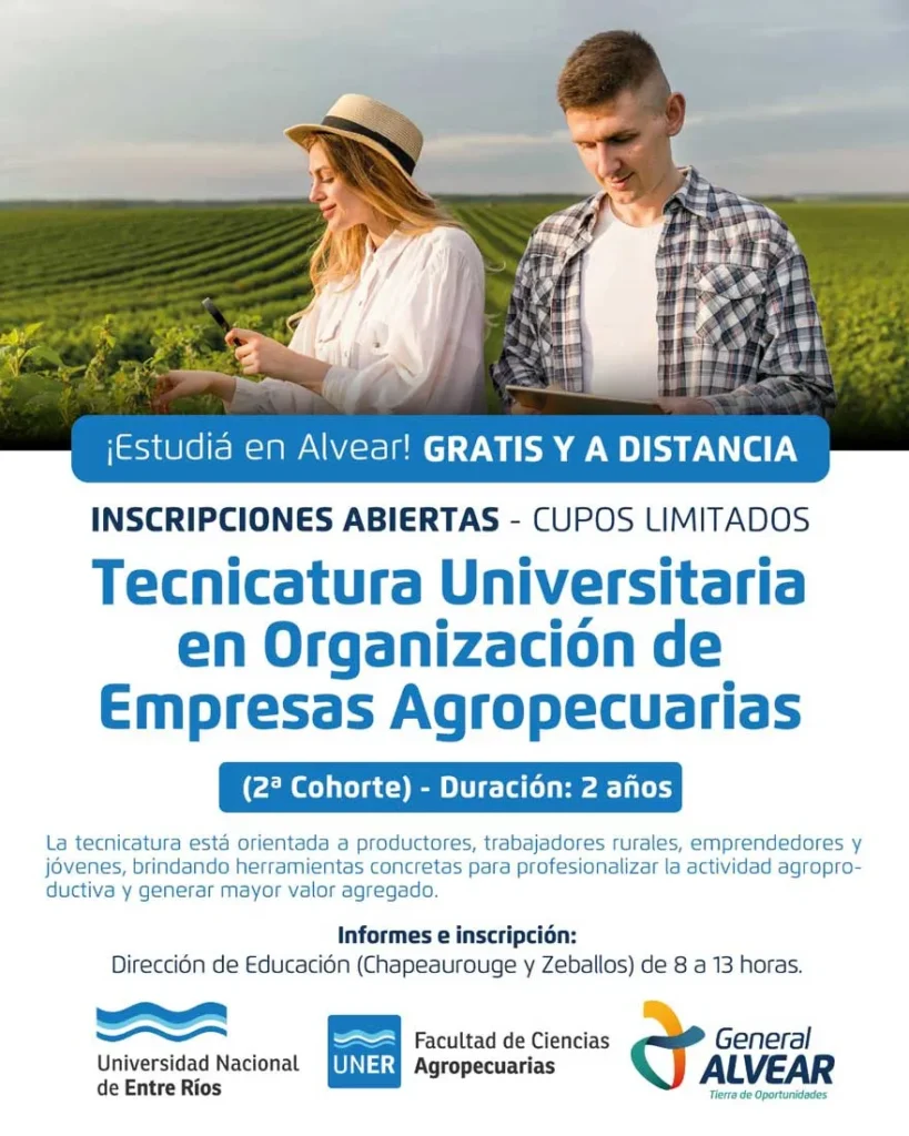 Se trata de la segunda cohorte de la Tecnicatura Universitaria en Organización de Empresas Agropecuarias, una tecnicatura de dos años de duración, de modalidad virtual asincrónica, con título de validez nacional y de carácter gratuito.