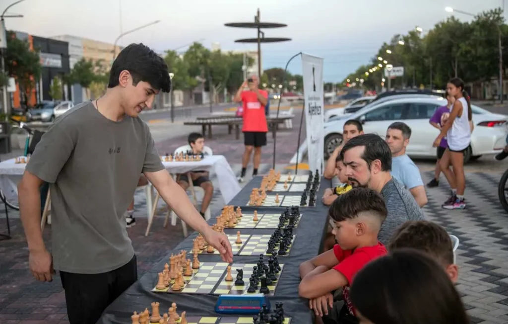 La actividad se desarrolló entre las 20 y las 23 horas en la segunda cuadra del Paseo de los Artesanos y contó con partidas simultáneas a cargo de Cristian Orozco, múltiple campeón provincial en categorías juveniles.