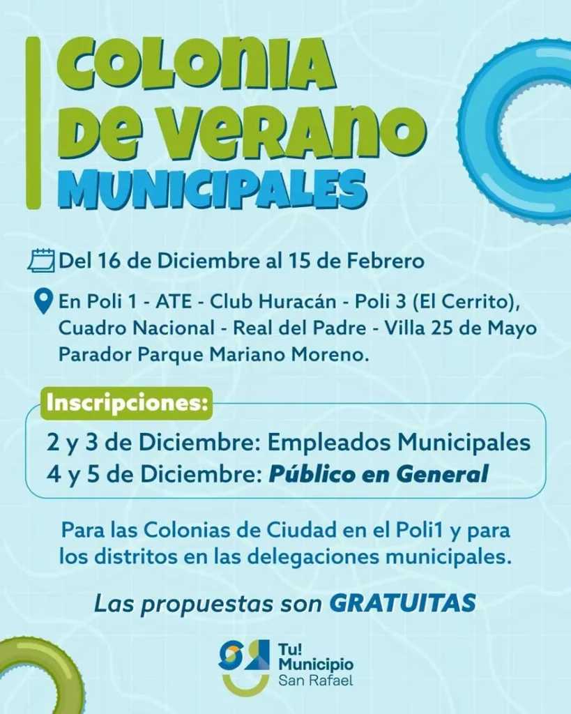 Desde la Dirección de Deportes anunciaron que las inscripciones tendrán dos etapas. Los empleados municipales podrán hacerlo el martes 2 y miércoles 3 de diciembre, mientras que el público en general tendrá la oportunidad de anotar a sus peques el jueves 4 y viernes 5 de diciembre.