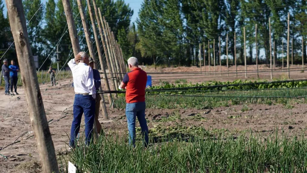 La finca modelo cuenta con un reservorio de agua, sistema de bombeo y cultivos experimentales. Actualmente se trabaja con 15 variedades de cebolla, y se preparan nuevos cultivos para la temporada primavera-verano, como tomate, melón, sandía y zapallo. Estas experiencias buscan generar información útil sobre el comportamiento de las distintas especies en el clima y suelo del sur mendocino.