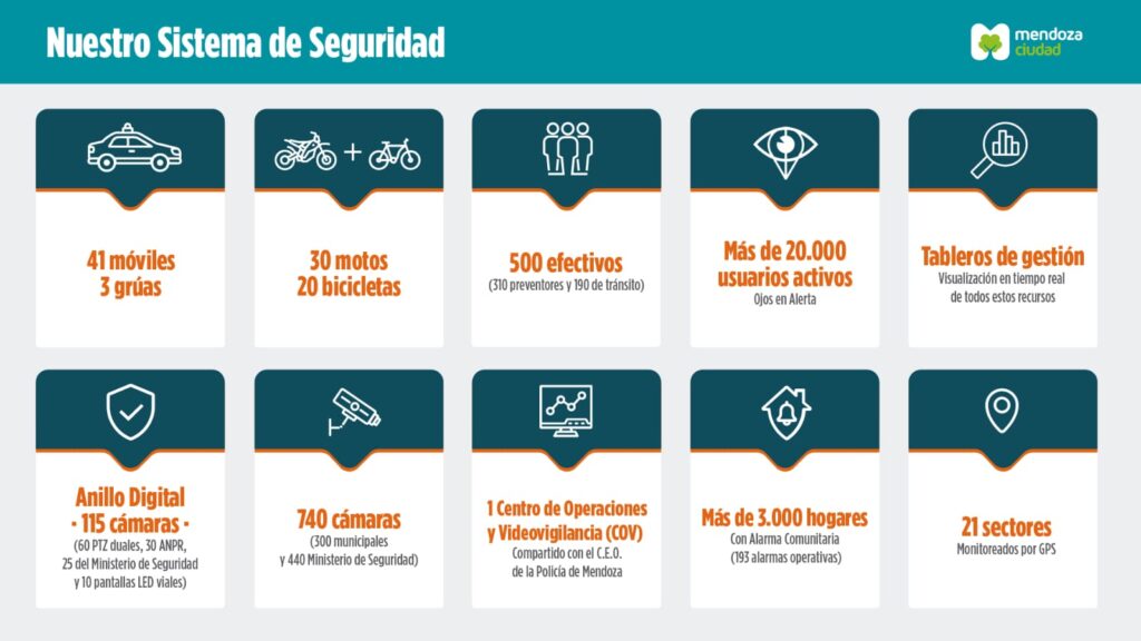 Con esta inversión, la Ciudad de Mendoza sigue trabajando para forjar una política de seguridad basada en la prevención, la tecnología y el trabajo conjunto con la provincia, incorporando herramientas que permiten mejorar la capacidad de monitoreo, anticipación y respuesta ante emergencias.Cabe detallar, que además del Gobernador de la Provincia de Mendoza, Alfredo Cornejo; acompañaron la Vicegobernadora de la Provincia, Hebe Casado; el Presidente Provisional del Senado, Martín Kerchner; el Procurador de la Corte, Alejandro Gullé; el Presidente de la Suprema Corte de Justicia, Dalmiro Garay; la Ministra de Seguridad y Justicia, María Mercedes Rus; el Secretario de Seguridad Ciudadana, Horacio Migliozzi; el Presidente del Concejo Deliberante de la Ciudad de Mendoza, Marcelo Rubio; el Subsecretario de Tecnología Aplicada a la Seguridad, Leandro Biscupovich; el Director General de Relaciones a la Comunidad, Hernán Amat; el Director General de Policía, Marcelo Calipo; el Subdirector General de Policía, Roberto Favaro; Concejales, Secretarios, Subsecretarios y Directores del Gabinete Municipal.