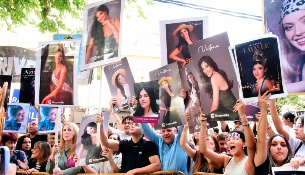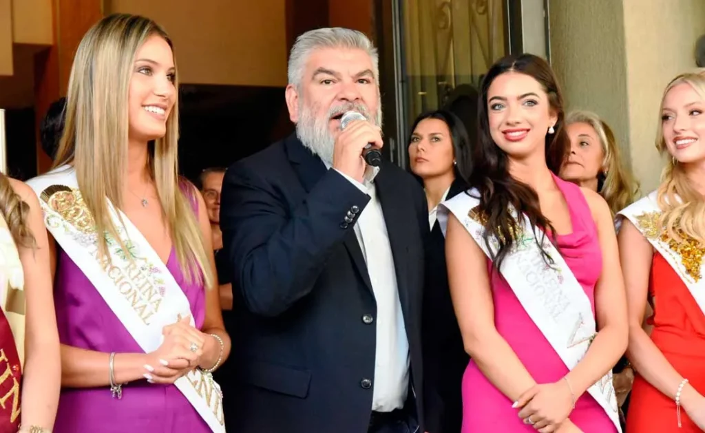 Además, estuvieron presentes funcionarios de todos los departamentos para acompañar en el ingreso al hotel a cada una de sus representantes. Entre ellos se encontraba el intendente Marcos Calvente, quien obsequió a la reina flores y un mate con el nombre “Victoria” grabado.