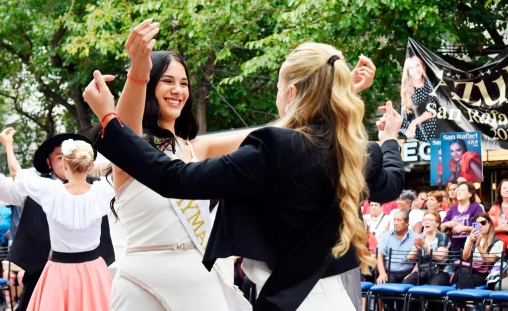 La música cuyana y la danza acompañaron cada tramo de la celebración. La cantante Fabiana Cacace, junto a Carlos Mendez y Eros Rosales en guitarras, interpretaron cuecas, gatos y tonadas dedicadas a las soberanas, con la compañía del Ballet Lucerito. Las reinas también se sumaron al baile, aportando su hermosa presencia.